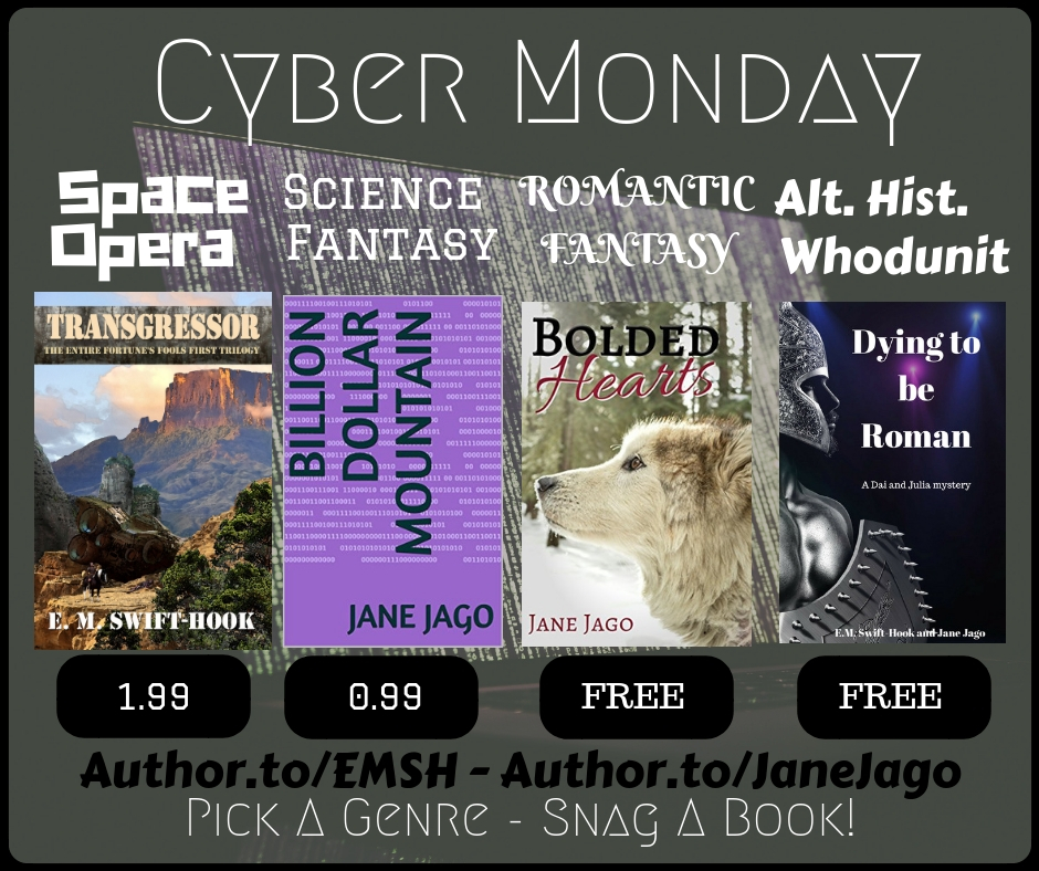 Imagine a Britain where Rome never left and a reformed Empire has ruled for two millennia. Technology is a bit more advanced in the present day – and a bit different – but people are the much the same. By Jane Jago and E.M. Swift-Hook.