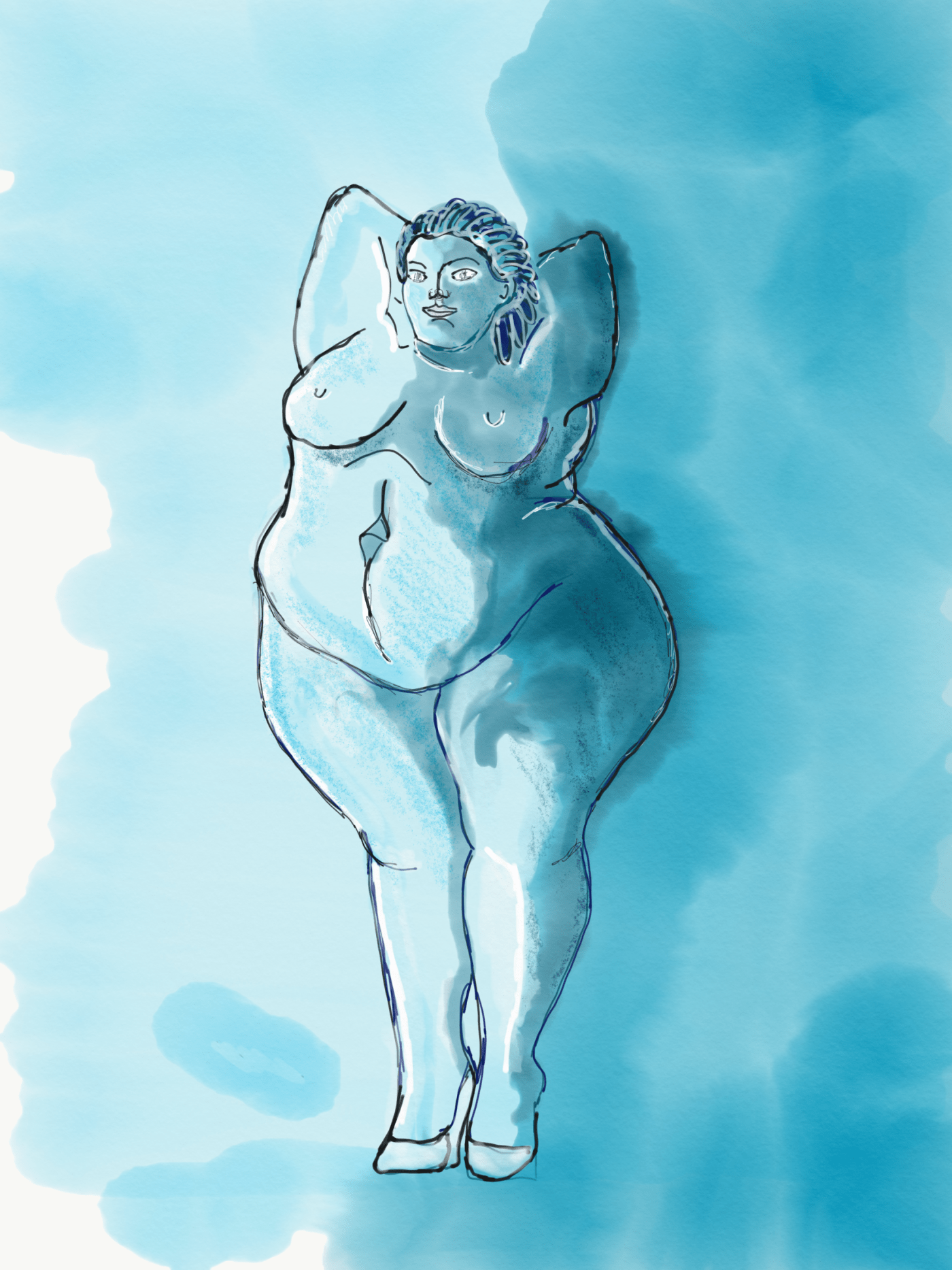 She lay in her rumpled bed and looked at the portrait that hung between the windows. Her husband looked too, before he laid an affectionate hand on her ample hip.