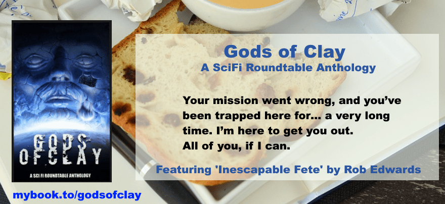 'Inescapable Fete' by Rob Edwards is one of the stories in Gods of Clay a new anthology crafted by the knights of the Sci Fi Roundtable. It features twelve brilliant stories that answer the question what if it were the gods are just more advanced beings? Would they be as fallible as the rest of us?