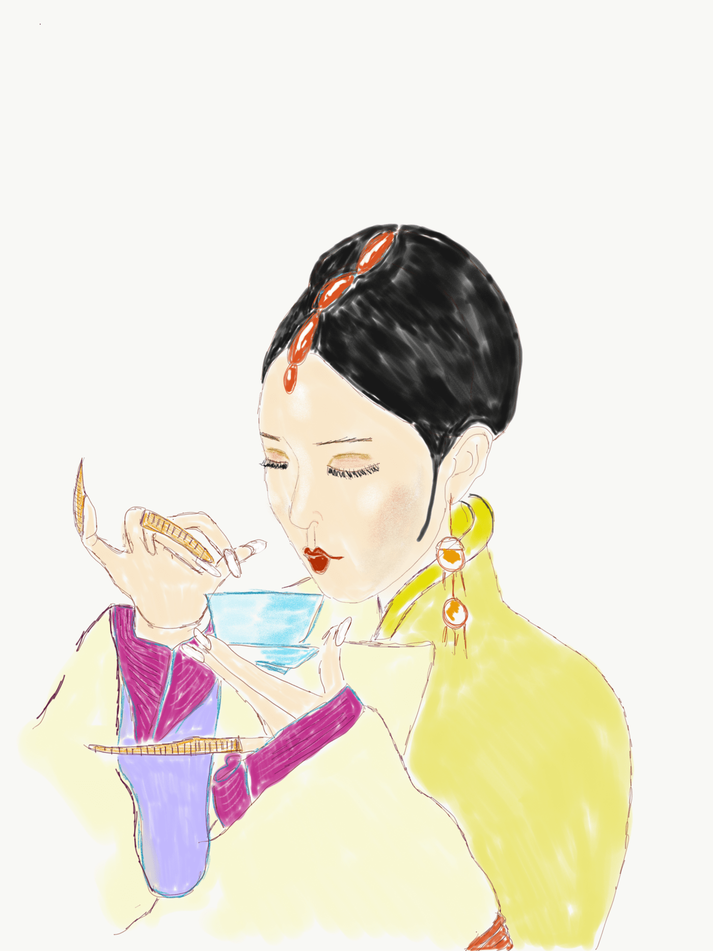 The Jade Princess lifted an exquisite porcelain cup in one slender hand. She inhaled the aroma of green tea overlain with a bitter foreign smell that would have had a less controlled woman wrinkling her nose. She sipped the brew before signalling her women to leave her.