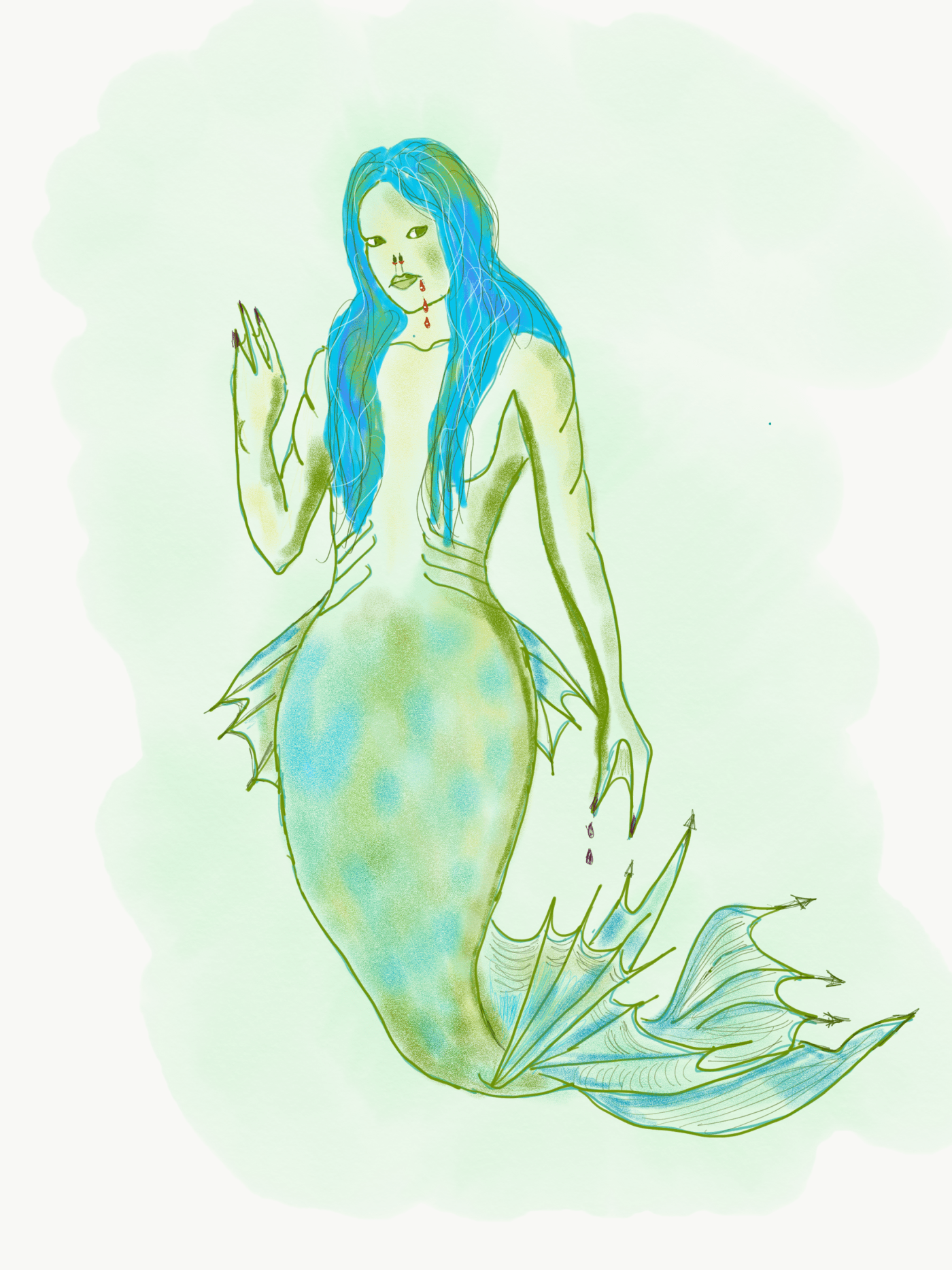 The merwoman showed bloodstained teeth.