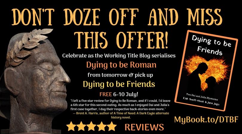 You can keep reading Dying to be Friends by Jane Jago and E.M. Swift-Hook, just pick it up for FREE until 10 July. Dying to be Roman begins tomorrow here on the Working Title Blog!