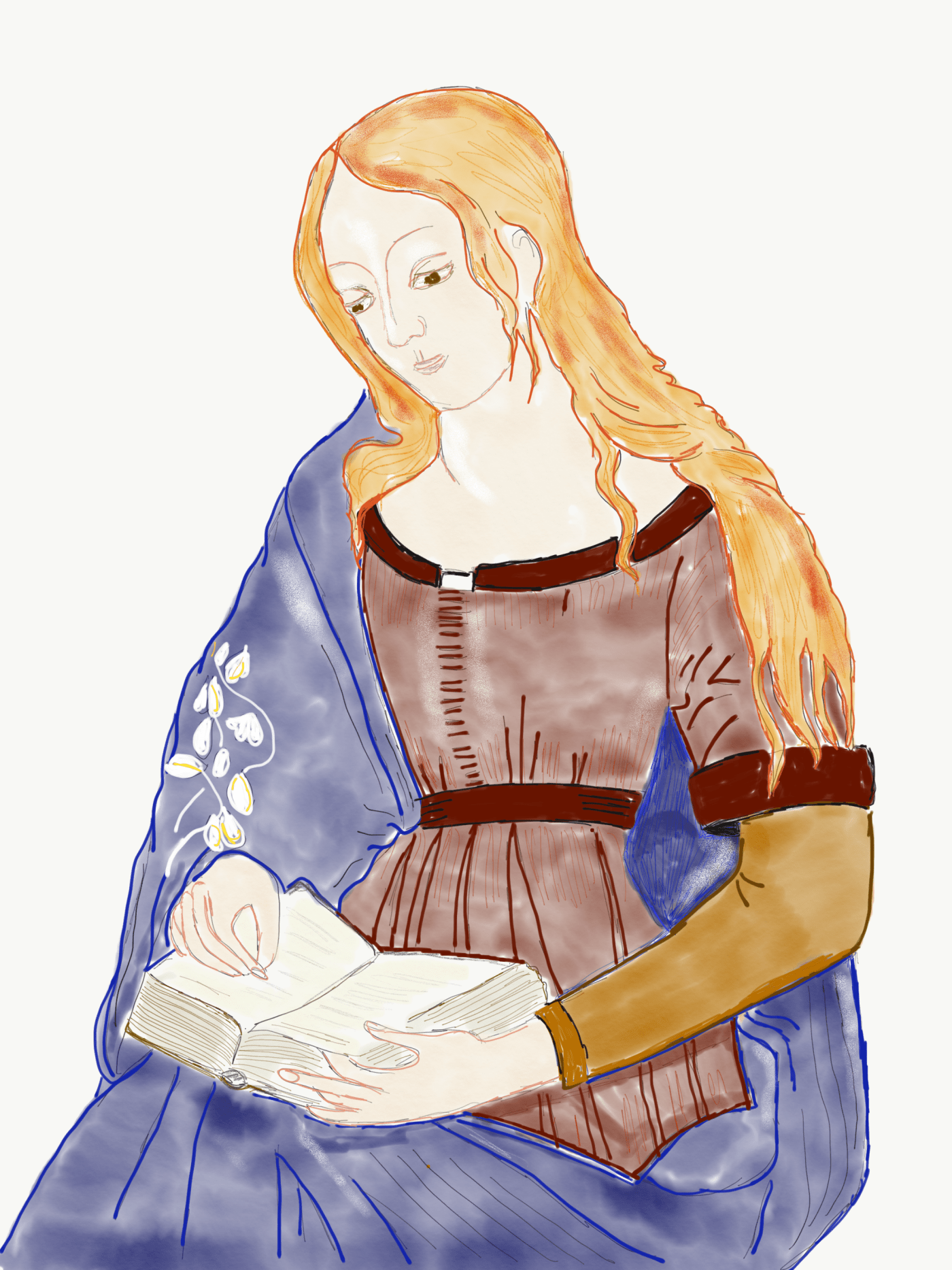 A picture of a woman reading was wanted. Roxanne sat for Hans to paint her.