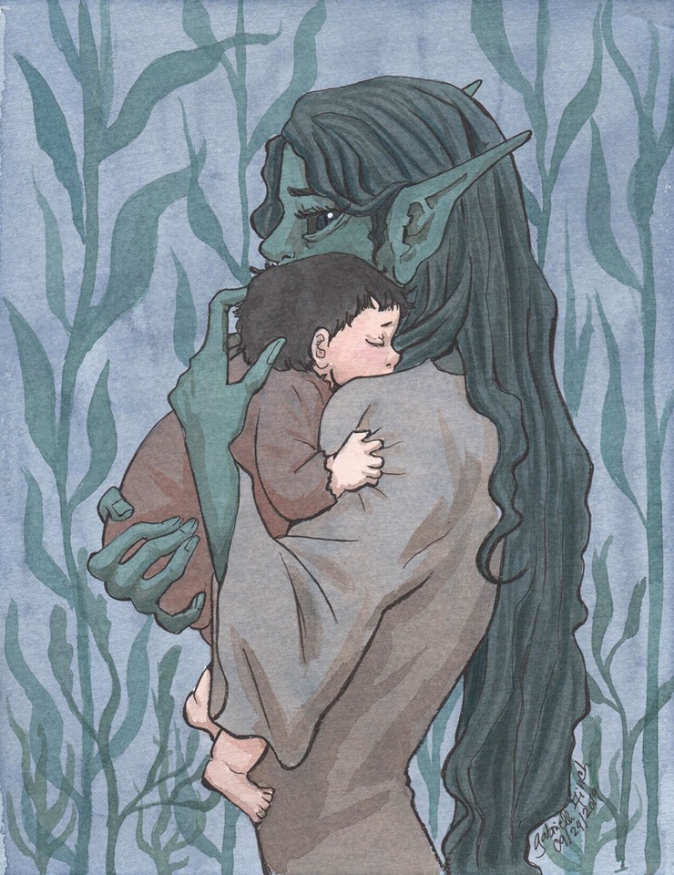 She took very little before she set the cottage alight herself. Her life there was over. Walking all night, she left the human baby on the steps of a loving home for foundlings, before vanishing into the forest.
