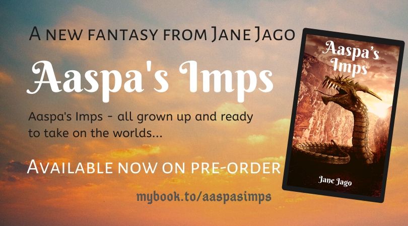 Aaspa’s Imps, the sequel to the highly original fantasy, Aaspa’s Eyes by Jane Jago is about to escape into the world. Take a sneak peek before it does…