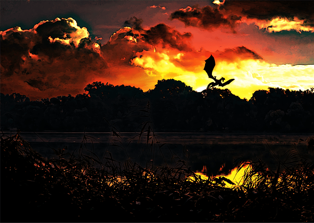 It was sunset when the column rounded an almost conical hill and found itself in the last valley before the climb. There was smoke rising from the chimneys of the squat, fieldstone buildings beside the mule corrals, and he guessed it spoke to the acolytes of dinner and warm beds. He and his men, of course, knew better. He held up a hand for a halt and a high-pitched and querulous voice from behind demanded to know what he thought he was doing. He didn’t bother to answer, instead he watched the skies, ignoring the moaning and mumbling from the grey-clad figures astride their mules. Adam looked westerly and was rewarded by the sight of a graceful winged creature flying towards him, stained blood red by the setting sun.